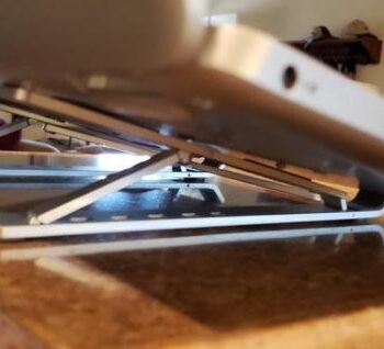 I looked at many different stands before purchasing this one. I use a thin 15″ laptop and was primarily concerned that the front hooks would come in the way of the wrist resting on the palm rest. My other concern was that the laptop would wobble because the stand is small (which helps because it fits easily in the side pocket of a book bag).