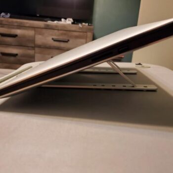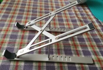 I really like how durable and simplistic this is. It weighs almost about nothing it comes in a cute gray pouch. There's no parts to assemble it's durable Its made of metal. You can use it for more than just your laptop. It works well with a tablet, a book, and I'm sure you can even use it for landscape mode for a phone, you don't have to open it all the way for it to work. It's very versatile and definitely a must-have for trying to ventilate a laptop and get a ton of more different types of uses at it while you're on the go or in the kitchen. Absolutely must buy!