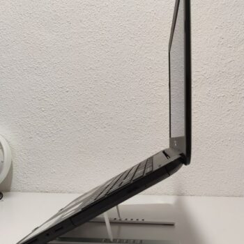 I was on the search for a small laptop stand/raiser that would still allow me to use the laptop while connecting a second screen for viewing zoom meetings, etc. This is absolutely perfect! I have a 14" HP notebook/tablet and this little stand handles it like a champ. It's quite robust and sturdy and has excellent height adjustment. Most importantly, the edges at the bottom that hold the laptop in place do not interfere with me typing at all, which most other computer stands I looked at seemed to. It's a smart, slim and portable design and it makes a huge difference in making sure my laptop can be comfortable and stay cool and not overheat. Excellent product!