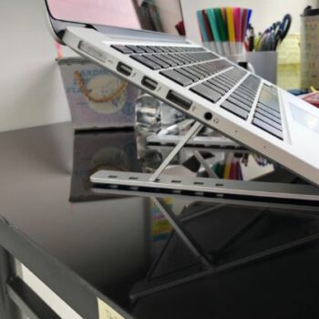 This is a pretty fancy laptop stand! Works very well, and is very handy. Unfortunately, I had to return it because I did not double check my desk dimensions before ordering it [not as much writing table space as I’d like if using this]. It is a good product, though, and if I had a larger table, I would buy this item again!