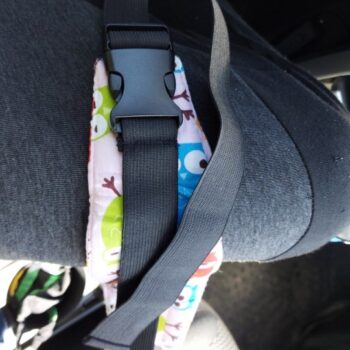 Our Baby Car Seat Head Support Band features an elastic band with a buckle and adjustable length strap. All you have to do is strap around your stroller or car seat where your little one’s forehead is so when he falls asleep, his head will stay upright.