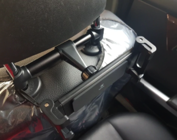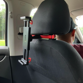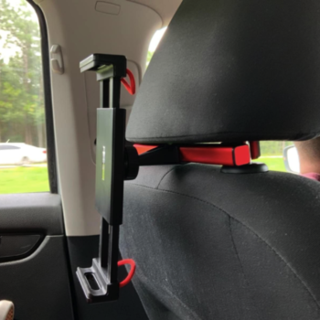 This is really easy to install, and works well with smaller headrests. It is a little hard to pull the arms apart with one hand while you hold the tablet if you need to fully extend the arms.