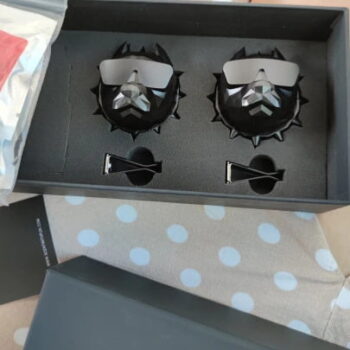 Add a touch of cool that smells amazing with this Clip-On Bulldog Car Air Freshener. Its sleek, all-black look, complete with a spiked collar and sunglasses, adds personality to any ride interior.