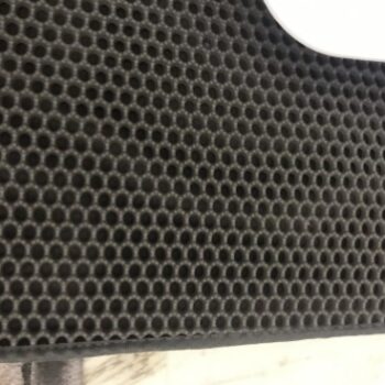 Decided on this item as had the same features as the slightly more expensive versions and the cheeper ones didnt look like they would work for me. The cats are happy with it and the honeycomb structure catches the wood pellets as I was hoping. The top layer is made from an eva type material so it's quite soft and spongy Really easy to clean I spray with bathroom cleaner and shower it all off in the bath when needed. My bathroom floor stays so much cleaner now the wood dust and pellets stay mostly contained in the mat. I think that if I was using fine grained clay or corn litter it would be even more efficient (I knew that the pellets.wpuld be a bit big for the design but it makes a big difference) I would reccomend this without hesitation :)