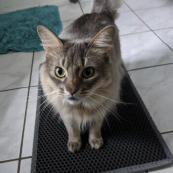 Placed this cat litter mat in front of the kitty litter and I can’t believe how much litter it’s catching. It’s stopped it being spread over the floor and cleaning it up is very quick. The mat is made from good quality materials and it’s soft enough for the kittens to not mind walking on.
