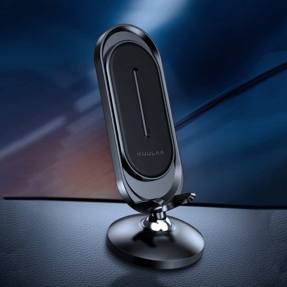 Built of solid zinc alloy, this phone holder is sturdy and features a 360-degree rotating base so you can stick the holder to any surface in your car.