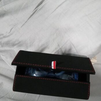 This product is quite nice. The look and feel are premium, and the best feature is the minimal design that gives a modern and distinguished look. Most glasses protectors of the same robustness leave something to desire in the looks department, but this product appears mature and elegant. The clips have a nice closing strength and are also covered in the case material. The product doesn't appear to leave any noticeable discoloration, but I do not live in the warmest or most humid of climates. I would recommend this to anyone looking to store their glasses while not giving the appearance of immaturity.