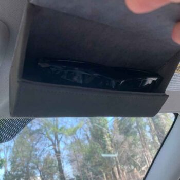 This sunglass holder is super useful. I always have prescription sunglasses in my purse, but when my fiancé rides my car he never remembers to bring sunglasses and any pair that I keep in the car always ends up following him back inside or he loses them. I got this so that I can always keep a spare pair of sunglasses in the car. I did find it’s a little cumbersome because the clips are too widespread so in order to have it not block the passenger visor mirror I need to have it hanging off the visor a bit.