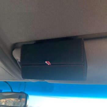 I really love this product. My car does not have anywhere to store my sunglasses and this is such a handy solution. I never scratch my glasses by storing them in the glovebox and always know where they are! The design is very nice as well and looks good in my car!