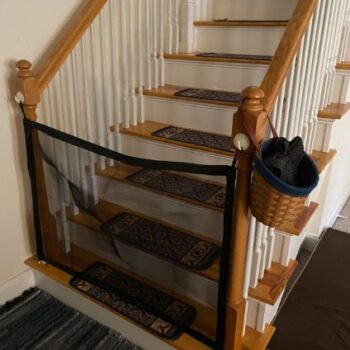I have an elderly, deaf cat that gets into trouble, and I wanted to block her way into the 2nd floor. I measured my stairs and wanted to use it vertically, but the actual net turned out to be a bit shorter, than I thought. Now my cat actually can squeeze in, so it's not really suitable for cats.