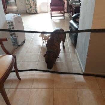 Holy smokes, this gate is awesome. It was so easy to stick the little hooks up and boom!.. it’s up. Looks great and won’t leave marks on my walls like my old wooden gate. Plus it came with extra hooks.