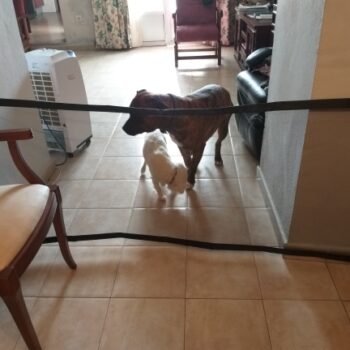 This is such a great compact device. I got it for my dog who has a tendency to run right out the door whenever I open it or leave it open just enough for her to open herself and run through. This comes with everything you need to set this up, it just takes a bit of patience and you’ll be able to use this in just a few minutes after opening. It also comes with another set of brackets so you can move the gate around or need to change it to separate your pets/babies from a different section of the house. I’m now able to set up a barrier that works over a much greater distance without having to deal with setting up baby gates that end up cracking or splintering over time or just won’t fit because of how they are designed. This gate is also easier to “take down” and readjust without having to find a space for it to be put away or getting lost or damaged when not in use.