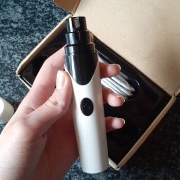 I've been working on getting my dog comfortable with the nail grinder. After a couple of weeks of daily treat sessions with the grinder on and off I have been able to have a calm grooming session with him. The grinder does what it is meant to, grinding down the nail allowing you to remove sharp edges or even shorten the nails. It is not too noisy and has nice features such as the guard and light. Wish me luck getting the cat on board!