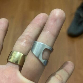 A true innovation in the world of beverage accessories. It fits perfectly and works flawlessly every time. The material is premium, giving it a luxurious feel. It's a practical yet fashionable item that has become indispensable in my social gatherings. Worn daily, this ring holds symbolic significance as a replacement for past engagements, despite being slightly uncomfortable and prone to pinching during bottle opening; it's well-made and recommended for its cool appearance and practicality.