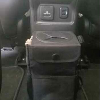 This trashcan works well in our SUV. With three kids and a busy schedule we often eat snacks or food in the car. This is the third trashcan I’ve now bought for a vehicle, and this one they got it right. The size is good and holds quite a bit. The thing I like the most is the top you don’t actually have to undo it or do anything to access the trash can you just push it in the top. My kids broke the last one by stepping on it too many times, and this one actually is elevated off the ground which makes less of a tripping hazard. You can also put a trash liner it so you can just take out the whole bag of trash out quickly and easily. It also had like a bungee cord on it if you didn’t want to use the strap if you wanted to utilize it somewhere else. I put it around my center console so it could be utilized in the backseat.